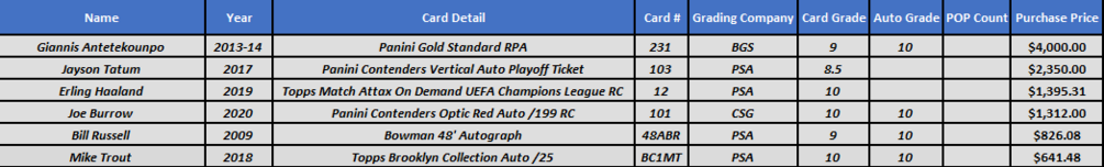 - Track/Sort Inventory by -> Cost basis, Population counts, Player, Grading Companies, Sport, etc.